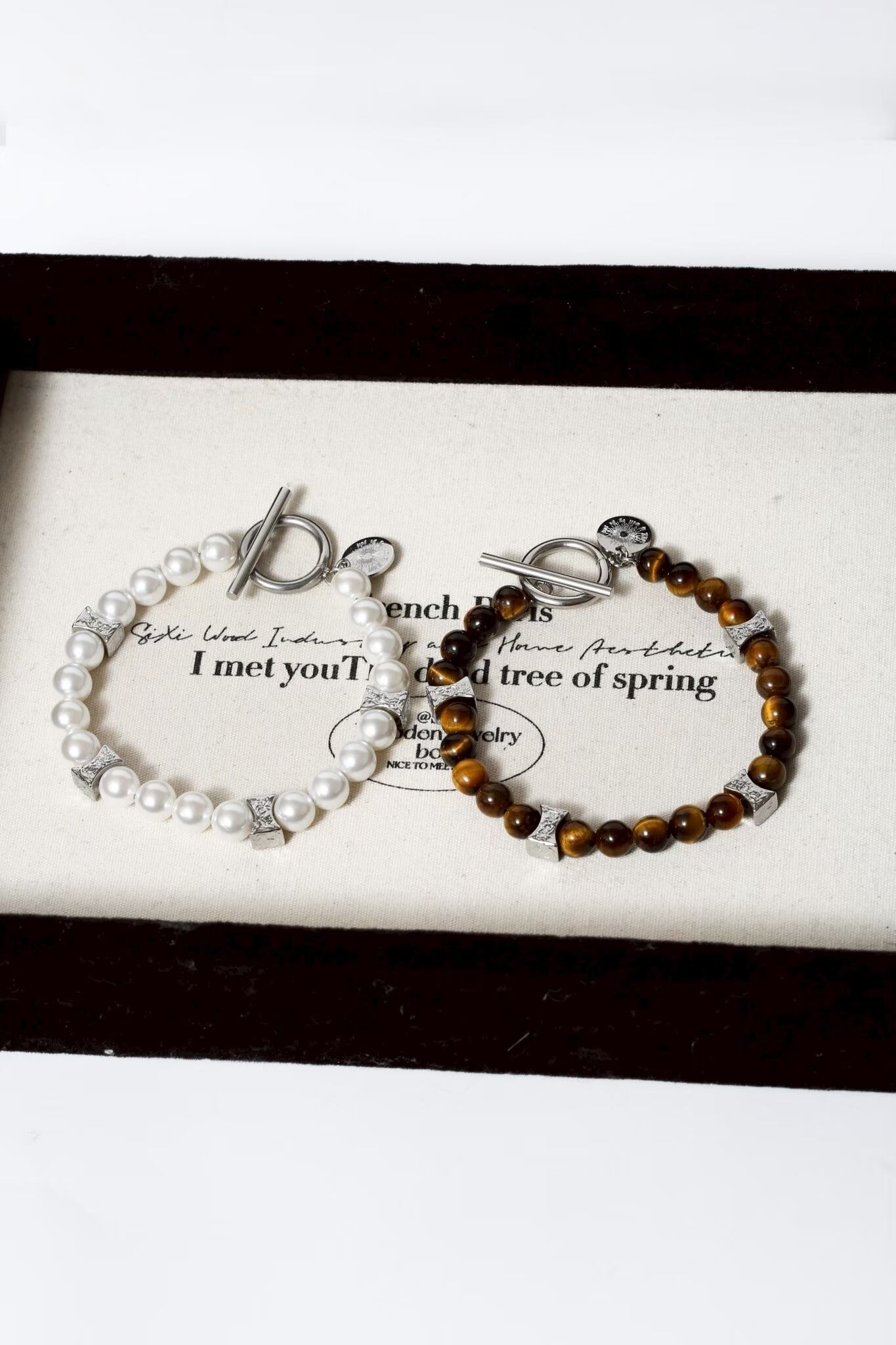 淡水パールの柔らかな光沢とステンレスの輝きが織りなすコントラストは、